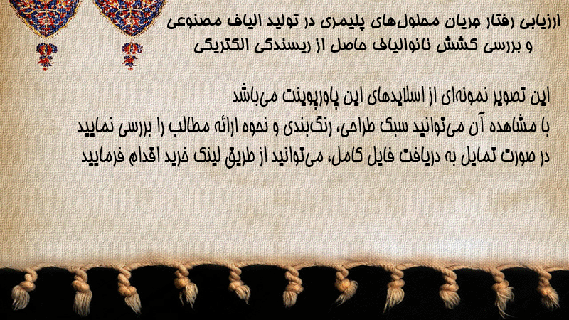 پاورپوینت ارزیابی رفتار جریان محلولهای پلیمری در تولید الیاف مصنوعی و بررسی کشش نانوالیاف حاصل از ریسندگی الکتریکی