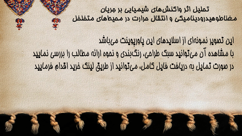 پاورپوینت تحلیل اثر واکنشهای شیمیایی بر جریان مغناطوهیدرودینامیکی و انتقال حرارت در محیطهای متخلخل