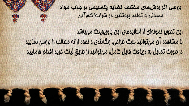 پاورپوینت بررسی اثر روشهای مختلف تغذیه پتاسیمی بر جذب مواد معدنی و تولید پروتئین در شرایط کمآبی