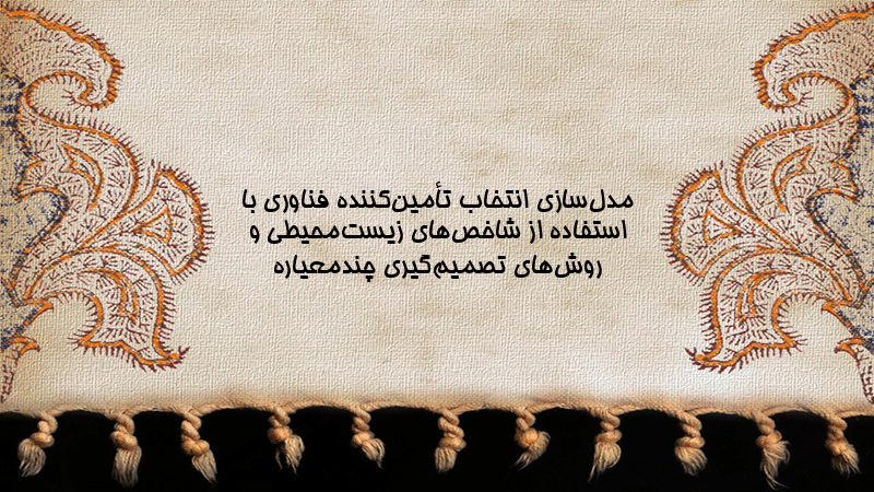 پاورپوینت مدلسازی انتخاب تأمینکننده فناوری با استفاده از شاخصهای زیستمحیطی و روشهای تصمیمگیری چندمعیاره