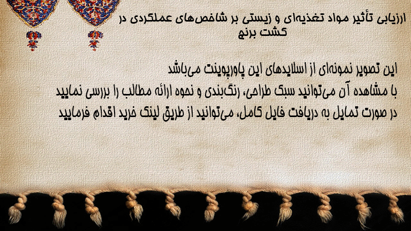 پاورپوینت ارزیابی تأثیر مواد تغذیهای و زیستی بر شاخصهای عملکردی در کشت برنج
