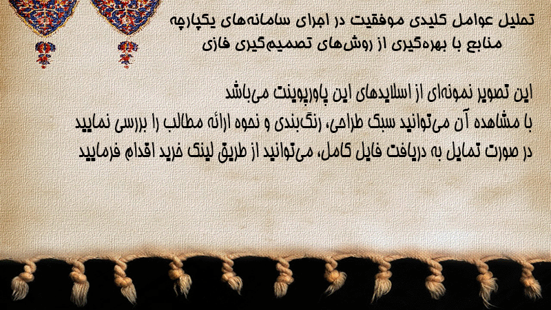 پاورپوینت تحلیل عوامل کلیدی موفقیت در اجرای سامانههای یکپارچه منابع با بهرهگیری از روشهای تصمیمگیری فازی