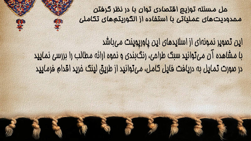 پاورپوینت حل مسئله توزیع اقتصادی توان با در نظر گرفتن محدودیتهای عملیاتی با استفاده از الگوریتمهای تکاملی