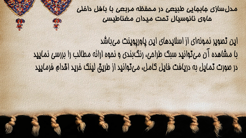 پاورپوینت مدلسازی جابجایی طبیعی در محفظه مربعی با بافل داخلی حاوی نانوسیال تحت میدان مغناطیسی
