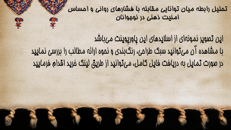 پاورپوینت تحلیل رابطه میان توانایی مقابله با فشارهای روانی و احساس امنیت ذهنی در نوجوانان
