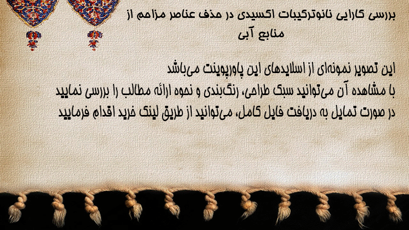 پاورپوینت بررسی کارایی نانوترکیبات اکسیدی در حذف عناصر مزاحم از منابع آبی