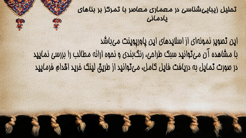 پاورپوینت تحلیل زیباییشناسی در معماری معاصر با تمرکز بر بناهای یادمانی