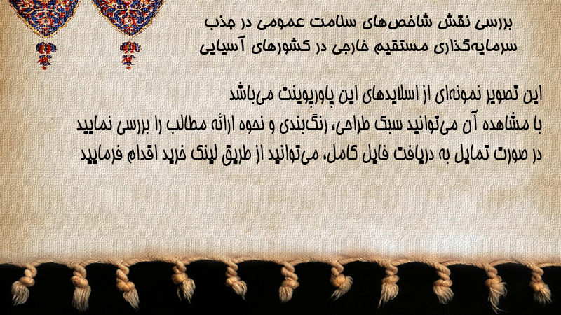 پاورپوینت بررسی نقش شاخصهای سلامت عمومی در جذب سرمایهگذاری مستقیم خارجی در کشورهای آسیایی