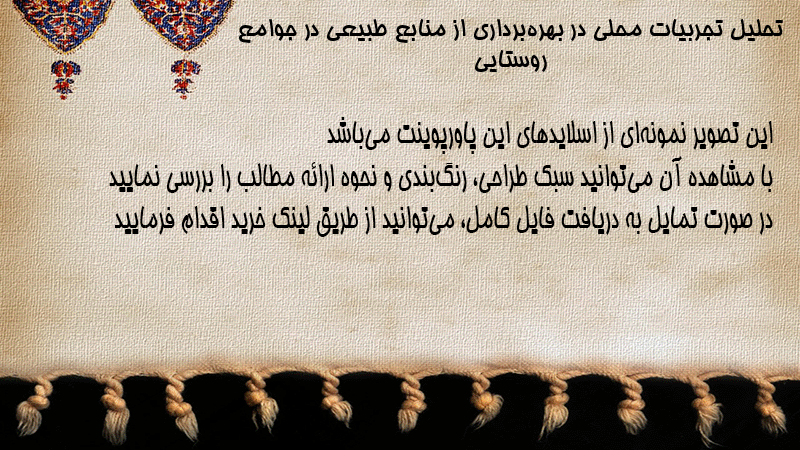 پاورپوینت تحلیل تجربیات محلی در بهرهبرداری از منابع طبیعی در جوامع روستایی