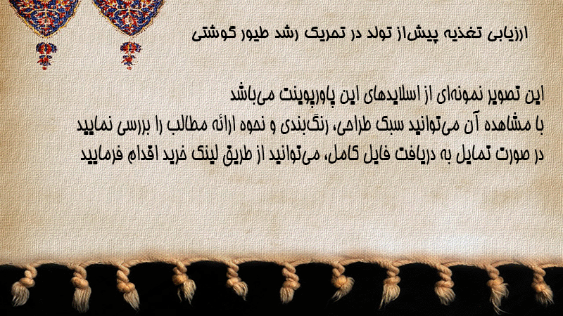پاورپوینت ارزیابی تغذیه پیشاز تولد در تحریک رشد طیور گوشتی