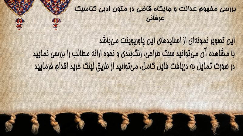 پاورپوینت بررسی مفهوم عدالت و جایگاه قاضی در متون ادبی کلاسیک عرفانی