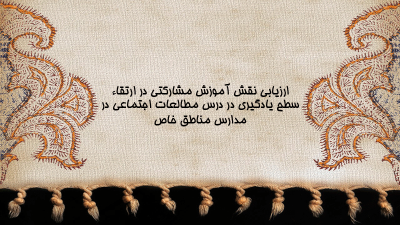 پاورپوینت ارزیابی نقش آموزش مشارکتی در ارتقاء سطح یادگیری در درس مطالعات اجتماعی در مدارس مناطق خاص