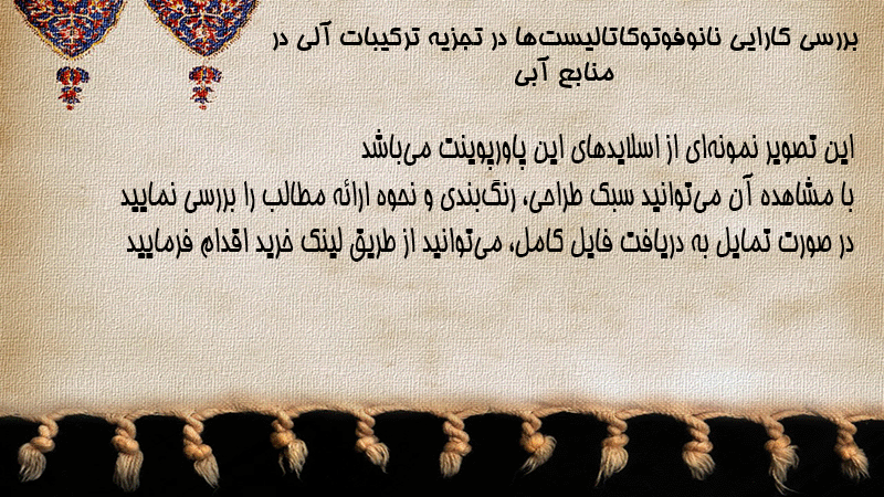 پاورپوینت بررسی کارایی نانوفوتوکاتالیستها در تجزیه ترکیبات آلی در منابع آبی