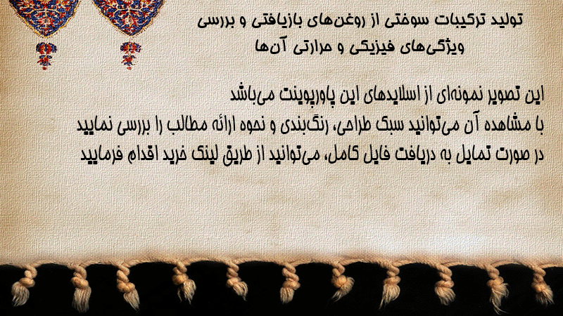 پاورپوینت تولید ترکیبات سوختی از روغنهای بازیافتی و بررسی ویژگیهای فیزیکی و حرارتی آنها