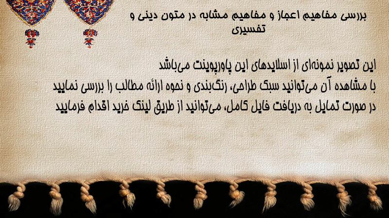 پاورپوینت بررسی مفاهیم اعجاز و مفاهیم مشابه در متون دینی و تفسیری