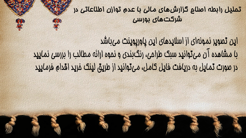 پاورپوینت تحلیل رابطه اصلاح گزارشهای مالی با عدم توازن اطلاعاتی در شرکتهای بورسی