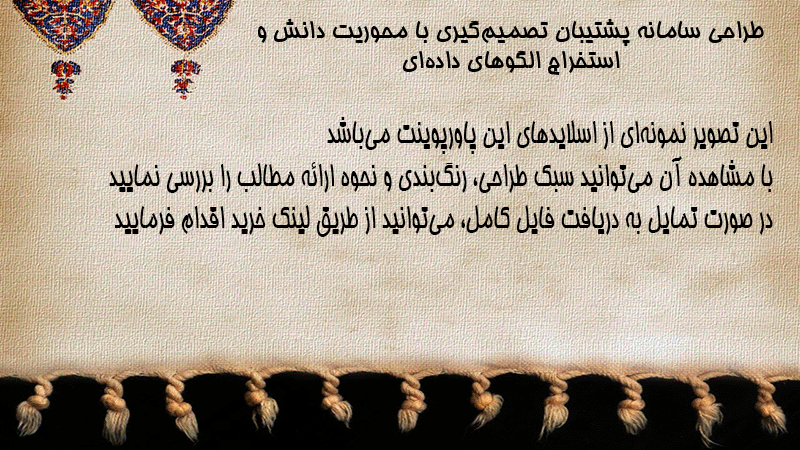پاورپوینت طراحی سامانه پشتیبان تصمیمگیری با محوریت دانش و استخراج الگوهای دادهای