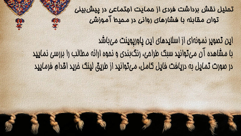 پاورپوینت تحلیل نقش برداشت فردی از حمایت اجتماعی در پیشبینی توان مقابله با فشارهای روانی در محیط آموزشی