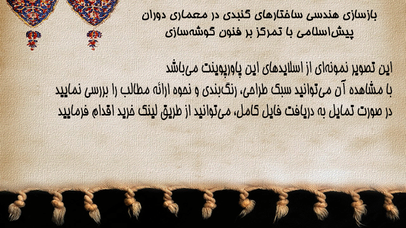 پاورپوینت بازسازی هندسی ساختارهای گنبدی در معماری دوران پیشاسلامی با تمرکز بر فنون گوشهسازی