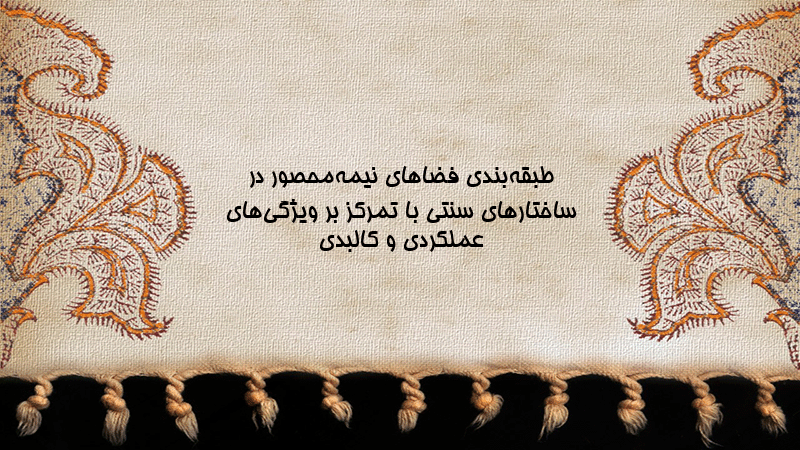 پاورپوینت طبقهبندی فضاهای نیمهمحصور در ساختارهای سنتی با تمرکز بر ویژگیهای عملکردی و کالبدی