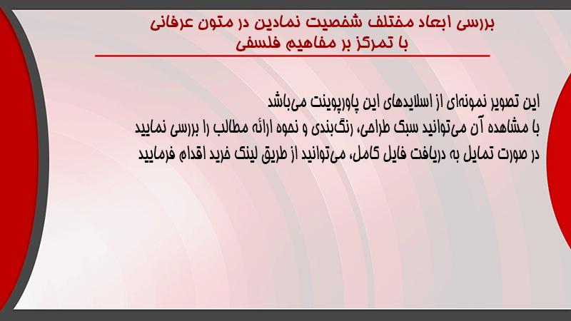 پاورپوینت بررسی ابعاد مختلف شخصیت نمادین در متون عرفانی با تمرکز بر مفاهیم فلسفی