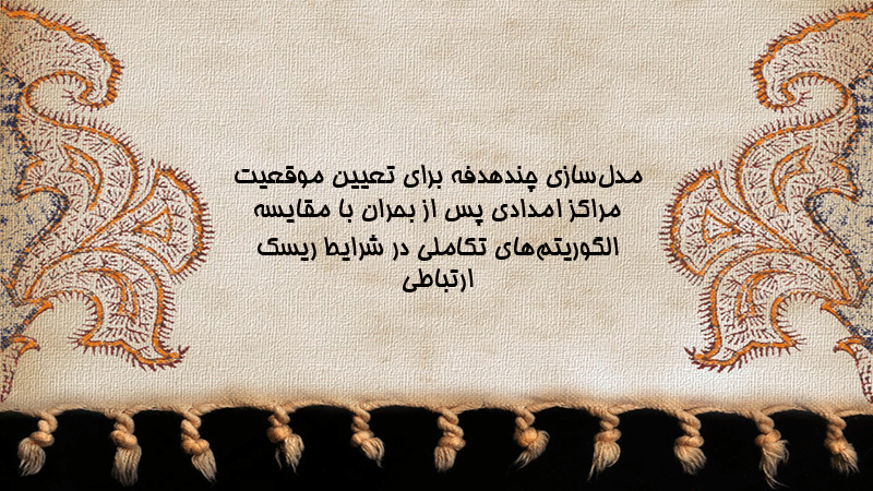 پاورپوینت مدلسازی چندهدفه برای تعیین موقعیت مراکز امدادی پس از بحران با مقایسه الگوریتمهای تکاملی در شرایط ریسک ارتباطی