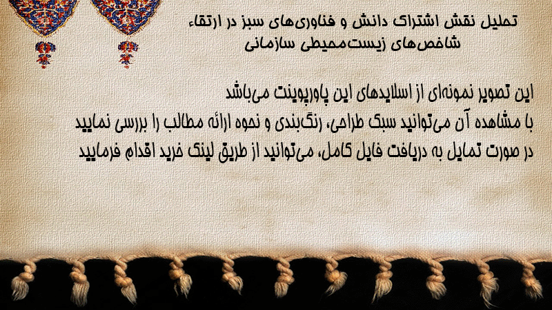 پاورپوینت تحلیل نقش اشتراک دانش و فناوریهای سبز در ارتقاء شاخصهای زیستمحیطی سازمانی