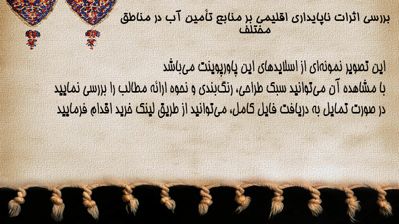 پاورپوینت بررسی اثرات ناپایداری اقلیمی بر منابع تأمین آب در مناطق مختلف