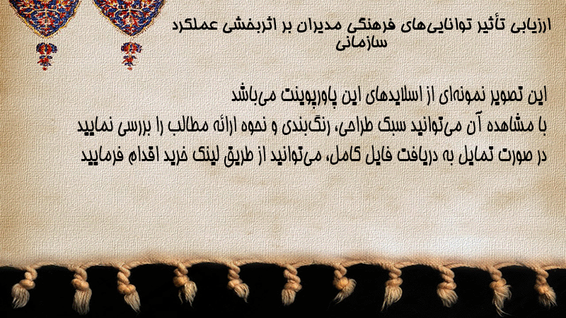 پاورپوینت ارزیابی تأثیر تواناییهای فرهنگی مدیران بر اثربخشی عملکرد سازمانی