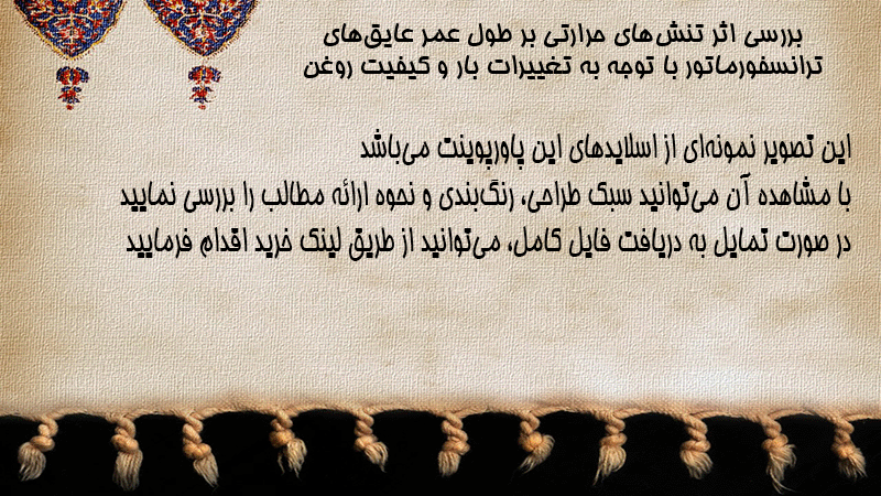 پاورپوینت بررسی اثر تنشهای حرارتی بر طول عمر عایقهای ترانسفورماتور با توجه به تغییرات بار و کیفیت روغن