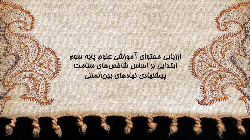 پاورپوینت ارزیابی محتوای آموزشی علوم پایه سوم ابتدایی بر اساس شاخصهای سلامت پیشنهادی نهادهای بینالمللی