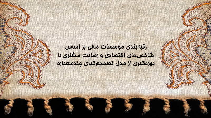 پاورپوینت رتبهبندی مؤسسات مالی بر اساس شاخصهای اقتصادی و رضایت مشتری با بهرهگیری از مدل تصمیمگیری چندمعیاره