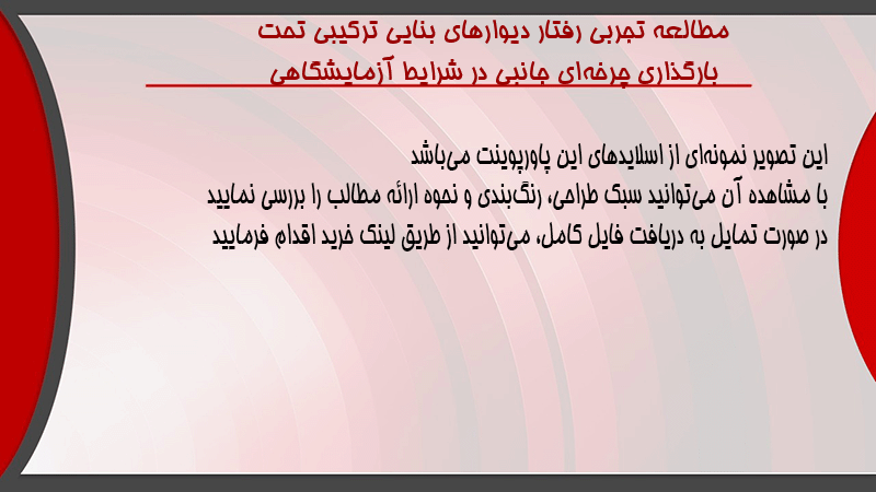 پاورپوینت مطالعه تجربی رفتار دیوارهای بنایی ترکیبی تحت بارگذاری چرخهای جانبی در شرایط آزمایشگاهی