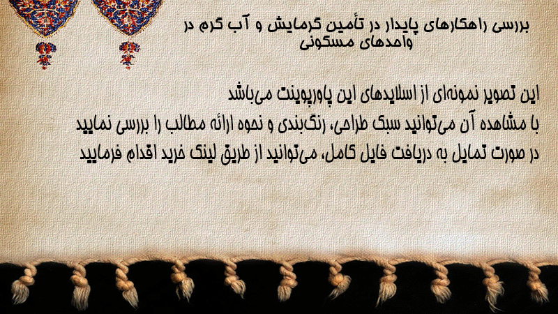 پاورپوینت بررسی راهکارهای پایدار در تأمین گرمایش و آب گرم در واحدهای مسکونی