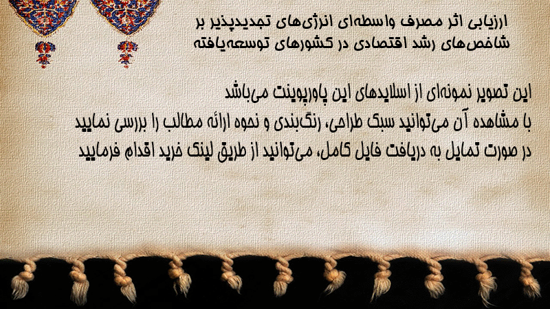 پاورپوینت ارزیابی اثر مصرف واسطهای انرژیهای تجدیدپذیر بر شاخصهای رشد اقتصادی در کشورهای توسعهیافته