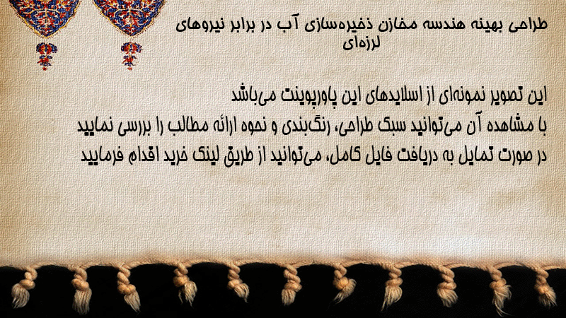 پاورپوینت طراحی بهینه هندسه مخازن ذخیرهسازی آب در برابر نیروهای لرزهای