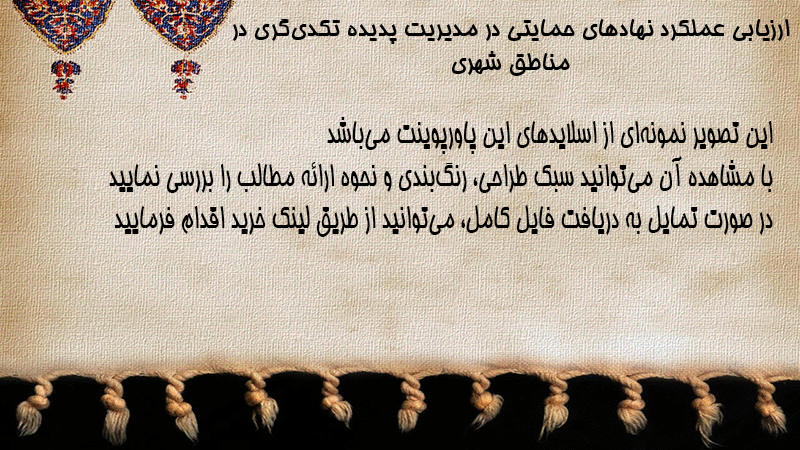 پاورپوینت ارزیابی عملکرد نهادهای حمایتی در مدیریت پدیده تکدیگری در مناطق شهری