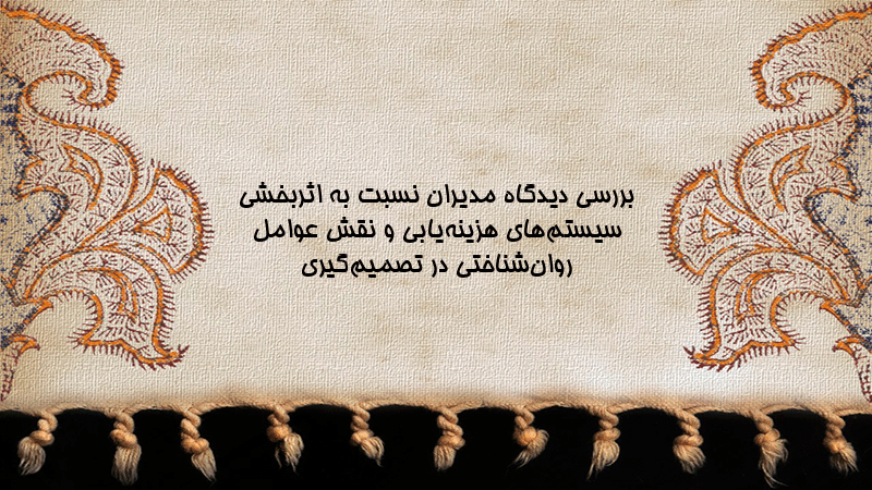 پاورپوینت بررسی دیدگاه مدیران نسبت به اثربخشی سیستمهای هزینهیابی و نقش عوامل روانشناختی در تصمیمگیری