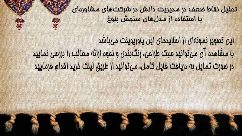 پاورپوینت تحلیل نقاط ضعف در مدیریت دانش در شرکتهای مشاورهای با استفاده از مدلهای سنجش بلوغ