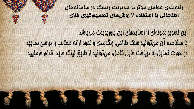 پاورپوینت رتبهبندی عوامل مؤثر بر مدیریت ریسک در سامانههای اطلاعاتی با استفاده از روشهای تصمیمگیری فازی