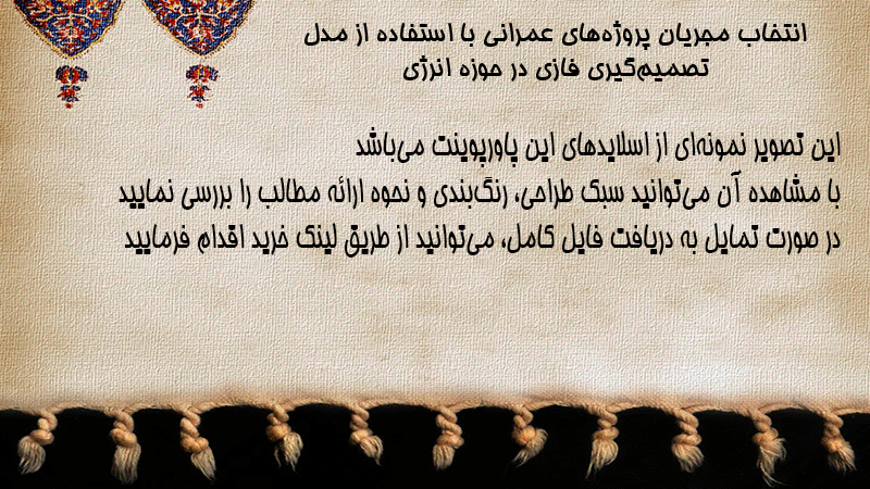 پاورپوینت انتخاب مجریان پروژههای عمرانی با استفاده از مدل تصمیمگیری فازی در حوزه انرژی
