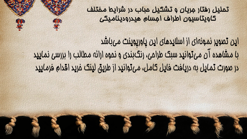 پاورپوینت تحلیل رفتار جریان و تشکیل حباب در شرایط مختلف کاویتاسیون اطراف اجسام هیدرودینامیکی
