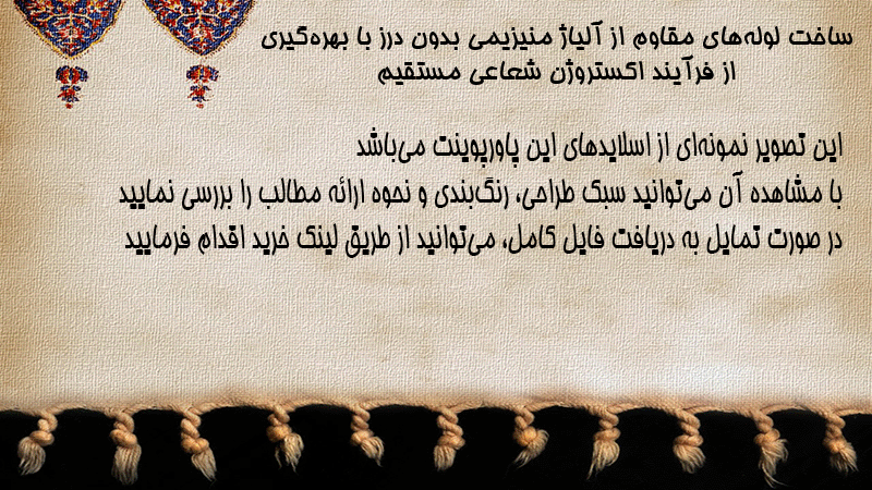 پاورپوینت ساخت لولههای مقاوم از آلیاژ منیزیمی بدون درز با بهرهگیری از فرآیند اکستروژن شعاعی مستقیم