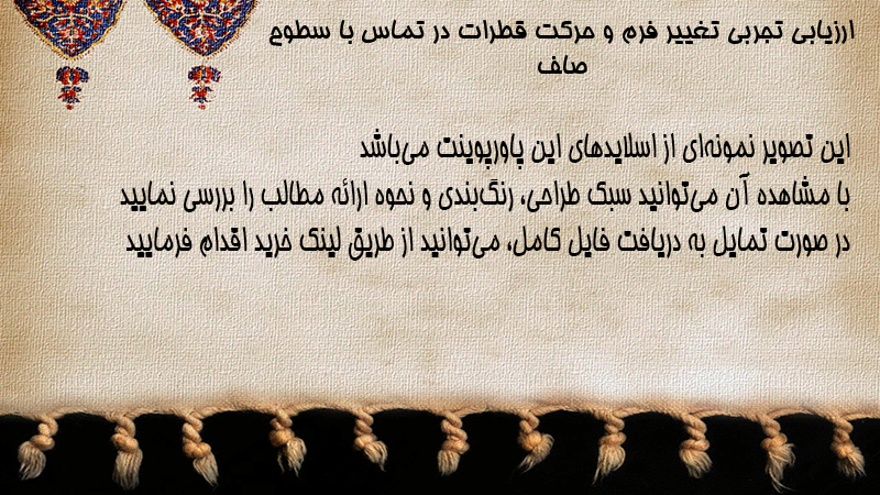 پاورپوینت ارزیابی تجربی تغییر فرم و حرکت قطرات در تماس با سطوح صاف