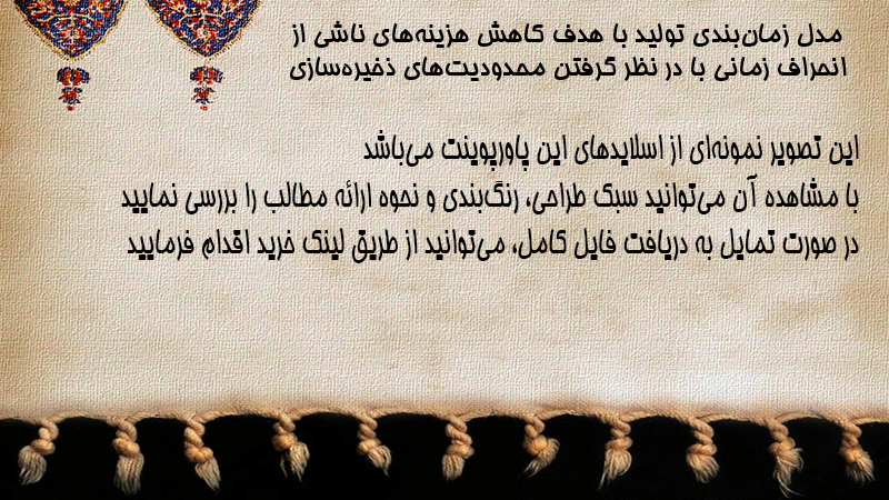پاورپوینت مدل زمانبندی تولید با هدف کاهش هزینههای ناشی از انحراف زمانی با در نظر گرفتن محدودیتهای ذخیرهسازی