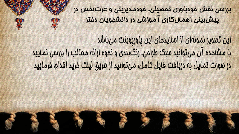 پاورپوینت بررسی نقش خودباوری تحصیلی، خودمدیریتی و عزتنفس در پیشبینی اهمالکاری آموزشی در دانشجویان دختر