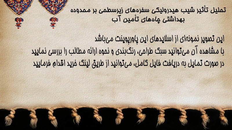 پاورپوینت تحلیل تأثیر شیب هیدرولیکی سفرههای زیرسطحی بر محدوده بهداشتی چاههای تأمین آب
