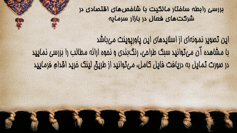 پاورپوینت بررسی رابطه ساختار مالکیت با شاخصهای اقتصادی در شرکتهای فعال در بازار سرمایه