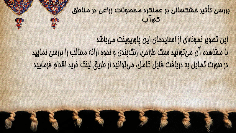 پاورپوینت بررسی تأثیر خشکسالی بر عملکرد محصولات زراعی در مناطق کمآب