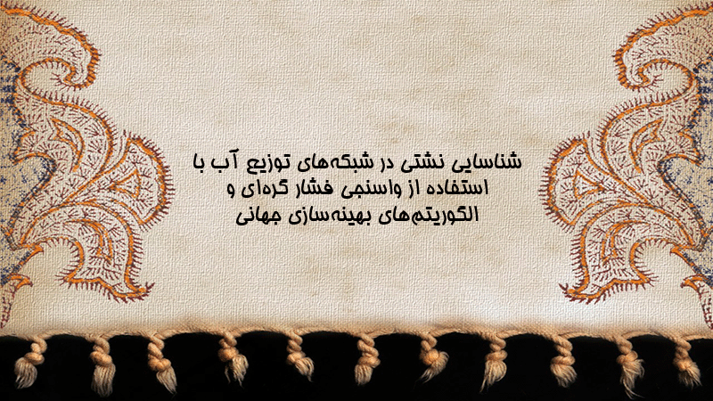 پاورپوینت شناسایی نشتی در شبکههای توزیع آب با استفاده از واسنجی فشار گرهای و الگوریتمهای بهینهسازی جهانی